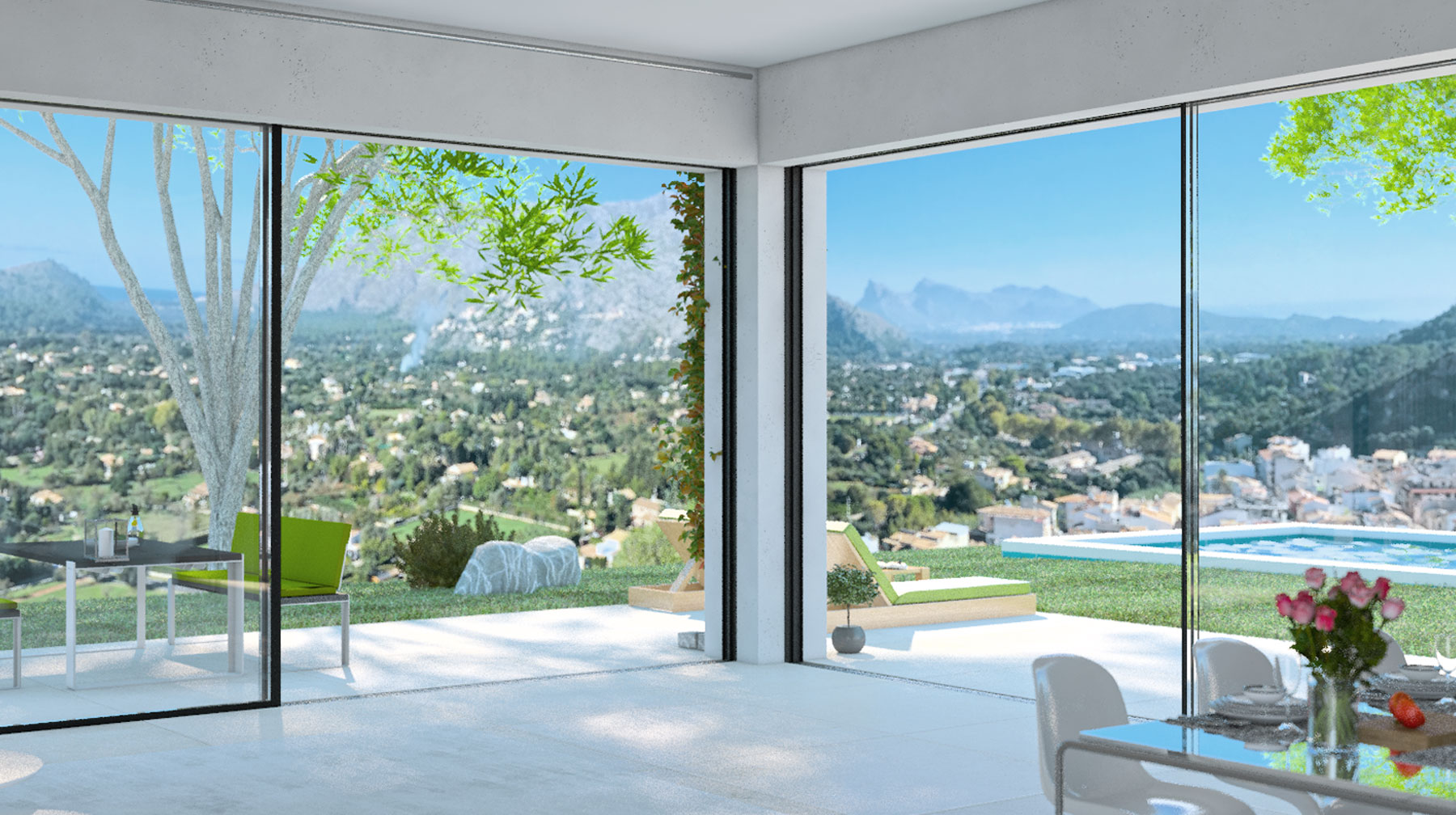 极致窄边-全景视界。 中间竖梃可视面尺寸最小23mm,从地板到天花板的大尺寸外框隐藏式安装,确保了更大比例的透明玻璃,从而获得极致的全景视野。